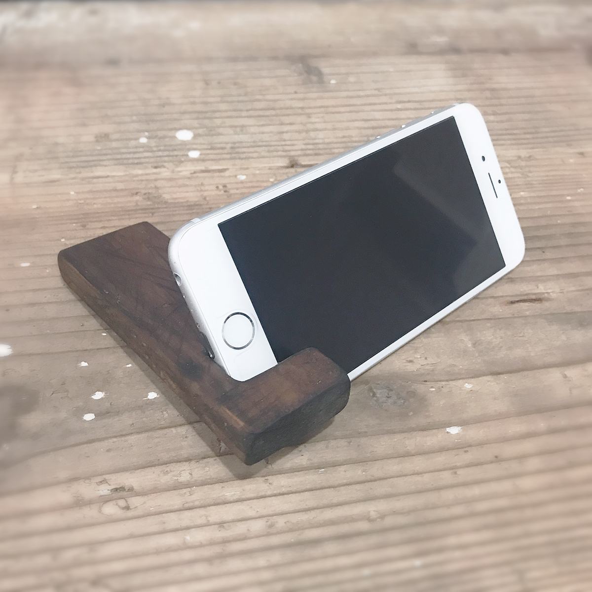ネットで見かけたとってもシンプルなスマートフォンスタンド。作って使ってみたら、これは持ち運びに便利。落としても木の音が耳にうれしい。